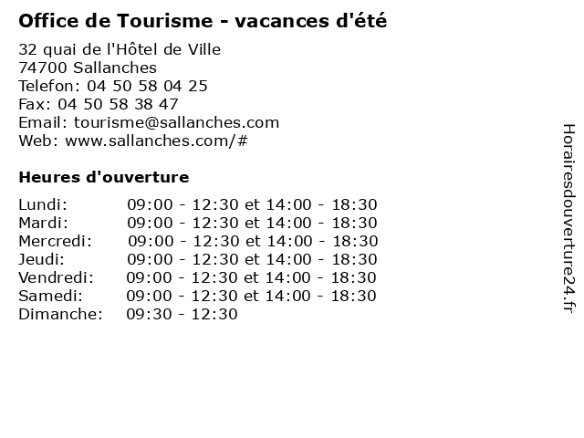| Samedi | 09:00-12:30 et 14:00-18:30 |