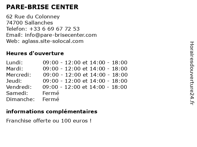 | Lundi | 09:00-12:00 et 14:00-18:00 |
