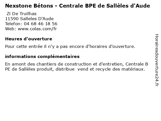 | Appeler Nexstone Bétons - Centrale BPE de Sallèles d'Aude | |