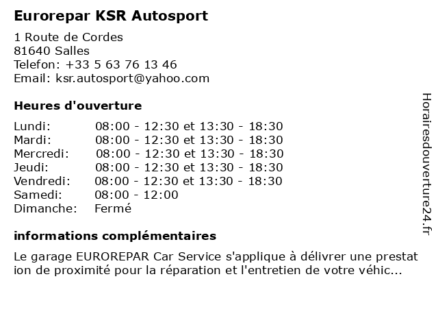 | Lundi | 08:00-12:30 et 13:30-18:30 |