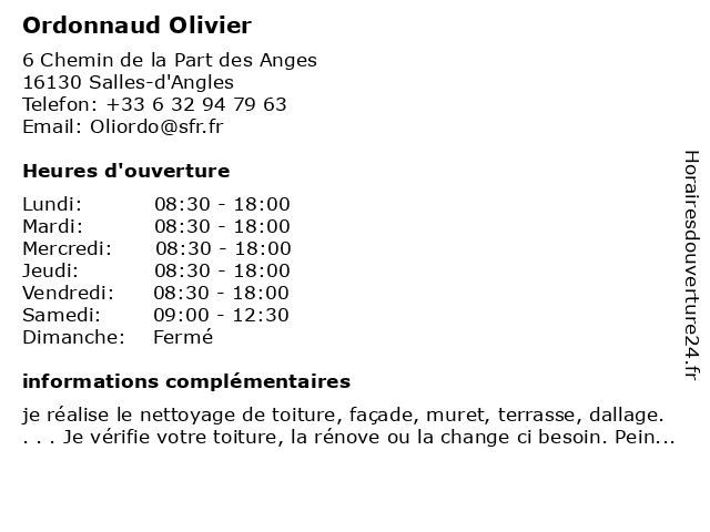 2 Le Salon d'Olivier (Distance: 10,14 km) 4 Rue Catherine d'Archiac, 17520 Archiac coiffeur, coiffure, coloration, coupe, d'olivier, le, salon, shampooing 3 Olivier Deslandes - Etiopathe (Distance: 14,28 km) 35 Avenue Jean Monnet, 16370 Cherves-Richemont consultation, deslandes, docteur, etiopathe, med, médecin, olivier, traitement 4 Medecin Olivier Page (Chirurgien vasculaire) (Distance: 20,37 km) 36 Rue de la Garenne, 17500 Jonzac chirurgien, docteur, medecin, olivier, page, sante, services, vasculaire 5 Medecin Olivier Page - Horaires du Cabinet (Chirurgien vasculaire) (Distance: 20,37 km) 36 Rue de la Garenne, 17500 Jonzac cabinet, chirurgien, docteur, du, horaires, medecin, olivier, page, sante, services, vasculaire 6 Dr.Olivier Auzerie-Ophtalmologie (Distance: 37,00 km) 51 Avenue Wilson, 16000 Angouleme auzerie, consultation, docteur, dr.olivier, ophtalmologie, santé |