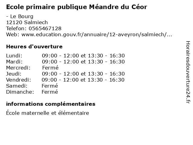 | Mardi | 09:00-12:00 et 13:30-16:30 |