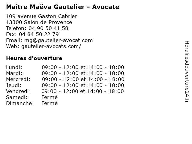 | Lundi | 09:00-12:00 et 14:00-18:00 |