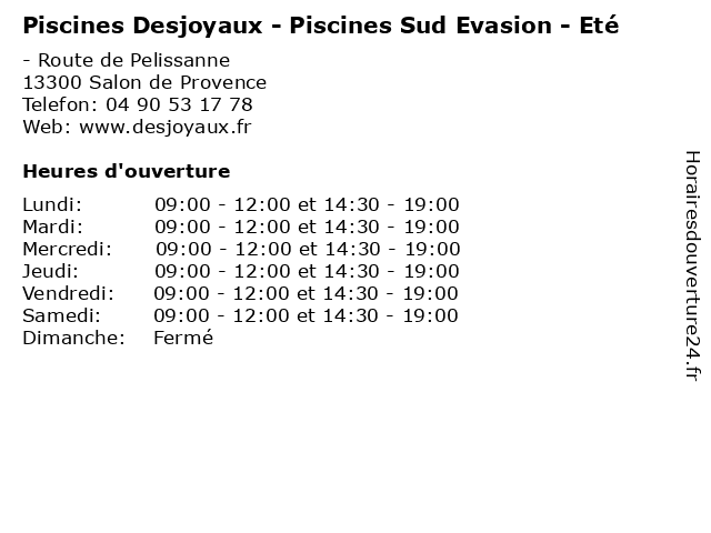 | Samedi | 09:00-12:00 et 14:30-19:00 |