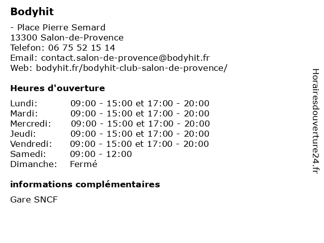 | Mercredi | 09:00-15:00 et 17:00-20:00 |