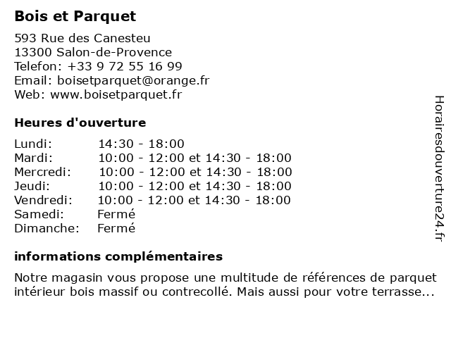 | Mercredi | 10:00-12:00 et 14:30-18:00 |
