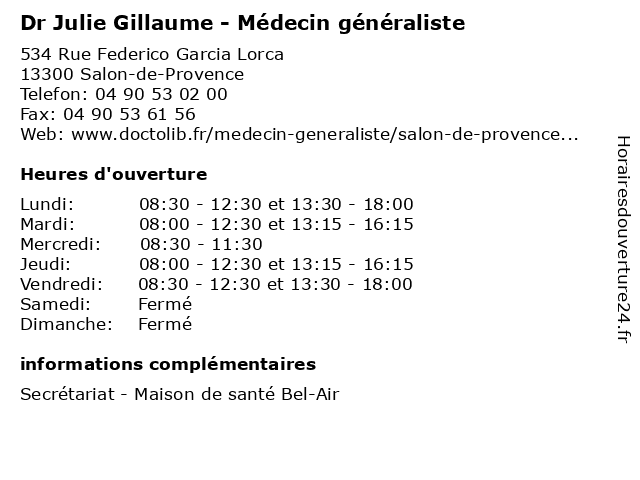 | Lundi | 08:30-12:30 et 13:30-18:00 |