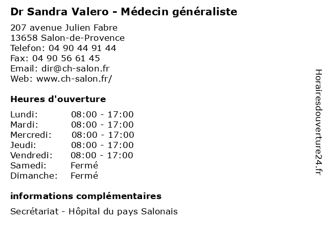 1 Sérénité By Sandra (Distance: 0,32 km) 111 Rue La Fayette, 13300 Salon de Provence beauté, by, institut, onglerie, sandra, sérénité, épilation 2 Dr Sandra Malburny - Anesthésiste (Distance: 1,11 km) 114 avenue Paul Bourret, 13300 Salon-de-Provence anesthésiste, consultation, docteur, dr, malburny, med, médecin, sandra, traitement 3 Dr Sandra Ortiz - Médecin généraliste (Distance: 12,38 km) - Traverse Mercure, 13580 La Fare-les-Oliviers docteur, dr, generaliste, généraliste, medical, médecin, ortiz, sandra, soin 4 Sandra Beauté Parfaite (Distance: 17,21 km) 62 Avenue Georges Guynemer, 13800 Istres beauté, epilation, ongle, parfaite, salon, sandra, soins 5 Dr Sandra Gary - Dermatologue et vénérologue (Distance: 17,92 km) 39 Avenue Jules Andraud, 13880 Velaux boutons, cécilia, dermatologue, docteur, dr, et, gary, huynh, liason, sandra, venerologue, vénérologue 6 Dr Sandra Vanotti - Pédiatre (Distance: 18,56 km) 22 Avenue des Anciens Combattants, 13800 Istres dr, enfant, medecin, pediatre, pédiatre, sandra, soins, vanotti |