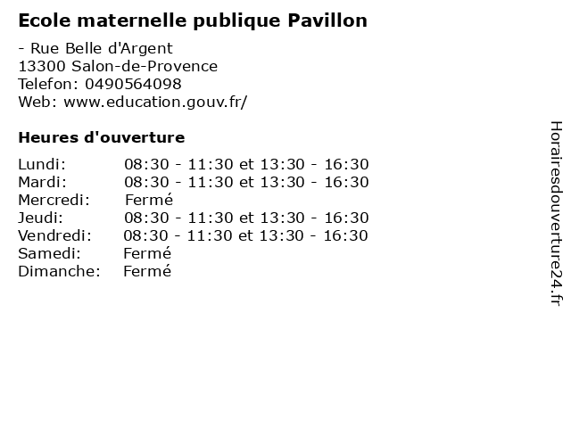 Lundi | 08:30-11:30 et 13:30-16:30 |