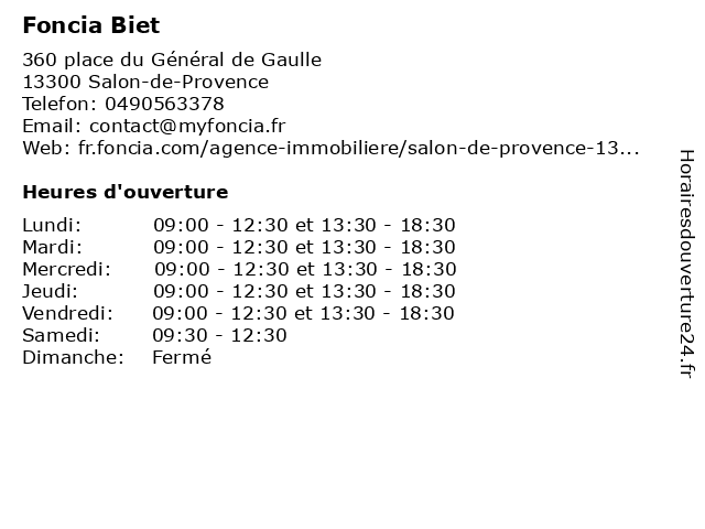 | Lundi | 09:00-12:30 et 13:30-18:30 |