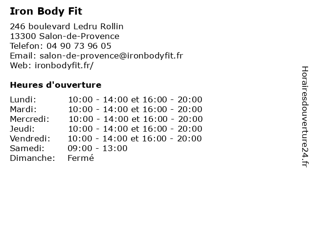 | Lundi | 10:00-14:00 et 16:00-20:00 |
