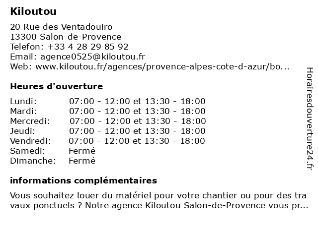 | Lundi | 07:00-12:00 et 13:30-18:00 |