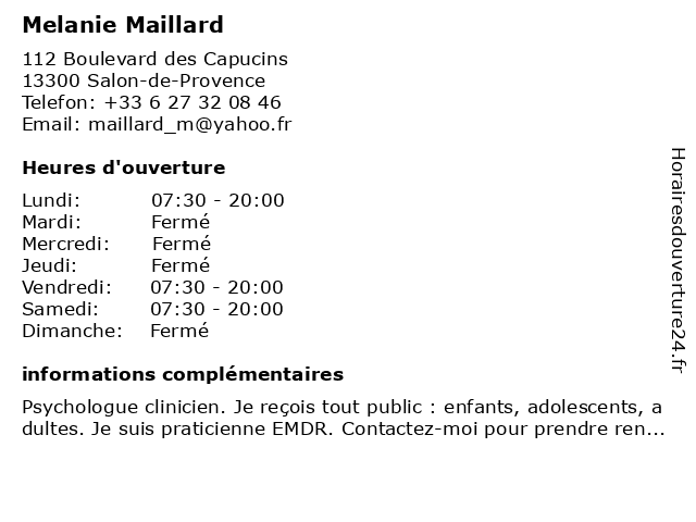| Lundi | 07:30-20:00 |