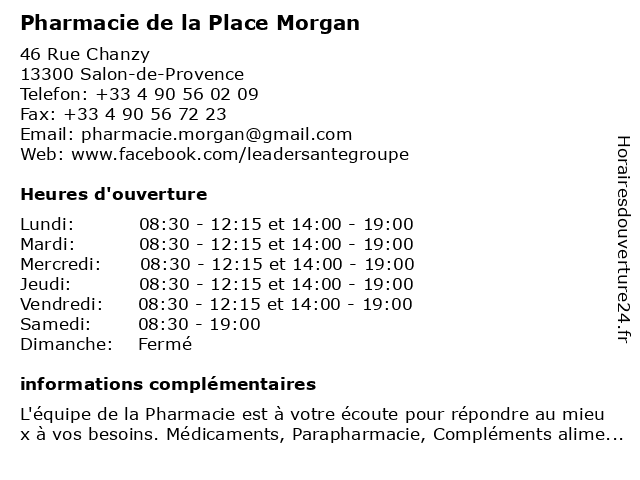 Termes de recherche pour Pharmacie de la Place Morgan:la, de, pharmacie, place, morgan |