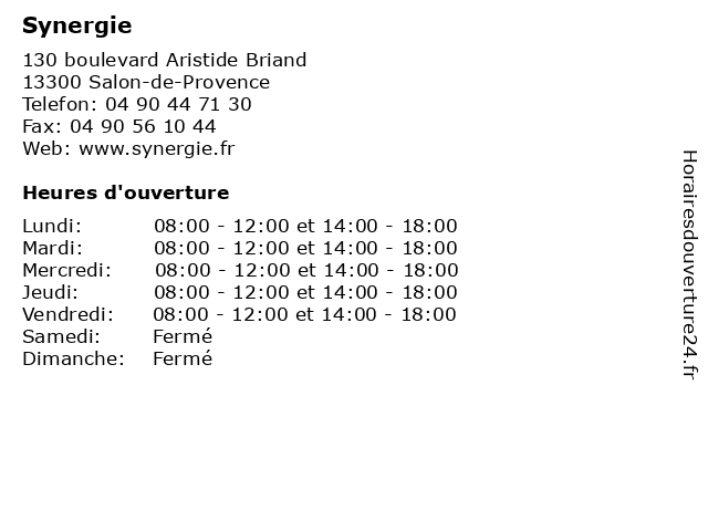 1 Synergie Proxi 2 (Distance: 3,77 km) - Rue Nicolas Joseph Cugnot, 13300 Salon-de-Provence emploi, intérim, proxi, synergie 2 Synergie (Distance: 22,65 km) 7 Avenue César Bernaudon, 13310 Saint Martin De Crau agence d'emploi, emploi, services, synergie 3 Synergie (Distance: 24,58 km) 29 De Courson, 13127 Vitrolles agence d'emploi, emploi, services, synergie 4 Synergie (Distance: 26,39 km) 22, boulevard Mongi, 13500 Martigues agence, emploi, intérim, services, synergie 5 Synergie (Distance: 28,02 km) s/n Zac des Florides, 13700 Marignane agence, emploi, services, synergie 6 Synergie (Distance: 30,72 km) 4 Place Barthélémy Niollon, 13100 Aix En Provence agence d'emploi, emploi, services, synergie |