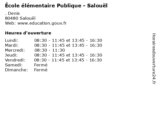 | Mardi | 08:30-11:45 et 13:45-16:30 |