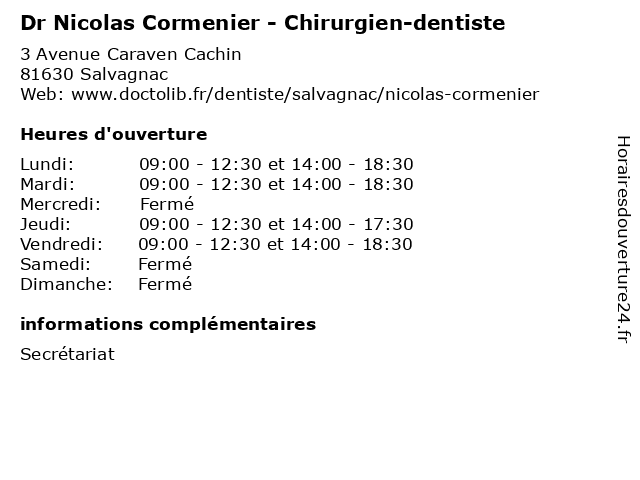 | Lundi | 09:00-12:30 et 14:00-18:30 |