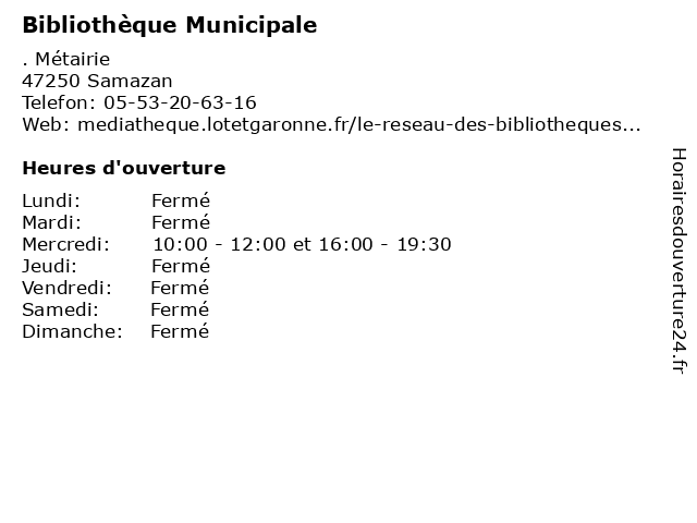 | Mercredi | 10:00-12:00 et 16:00-19:30 |