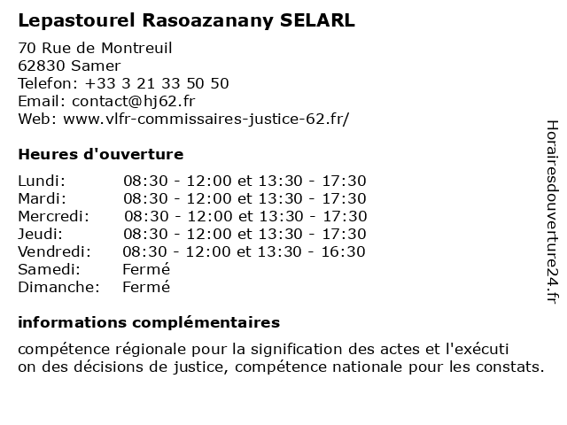 | Lundi | 08:30-12:00 et 13:30-17:30 |