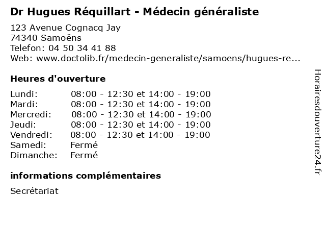 | Jeudi | 08:00-12:30 et 14:00-19:00 |