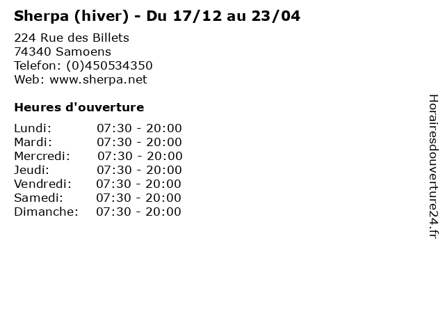 | Samedi | 07:30-20:00 |