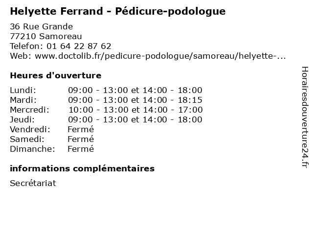 | Samedi | Fermé |