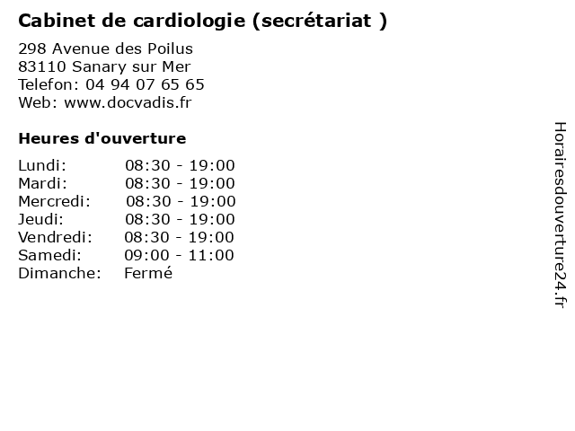 | Lundi | 08:30-19:00 |