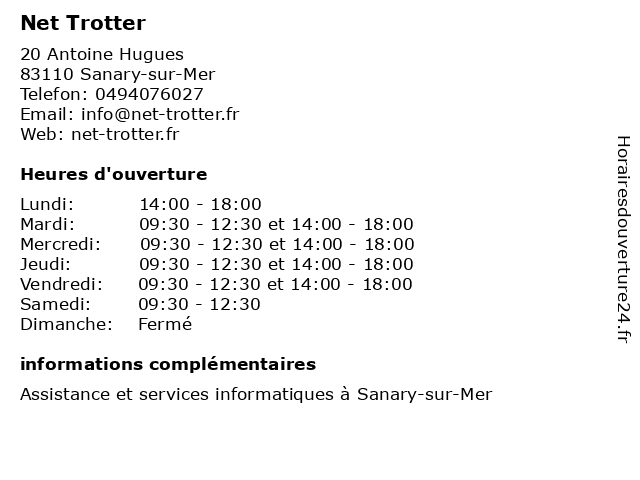 Mardi | 09:30-12:30 et 14:00-18:00 |