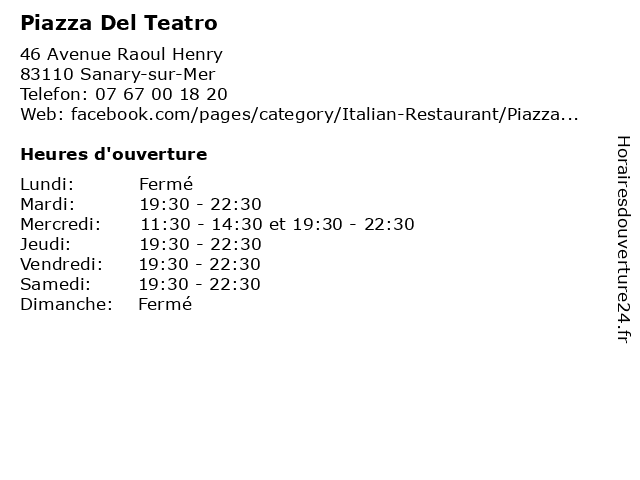| Mercredi | 11:30-14:30 et 19:30-22:30 |