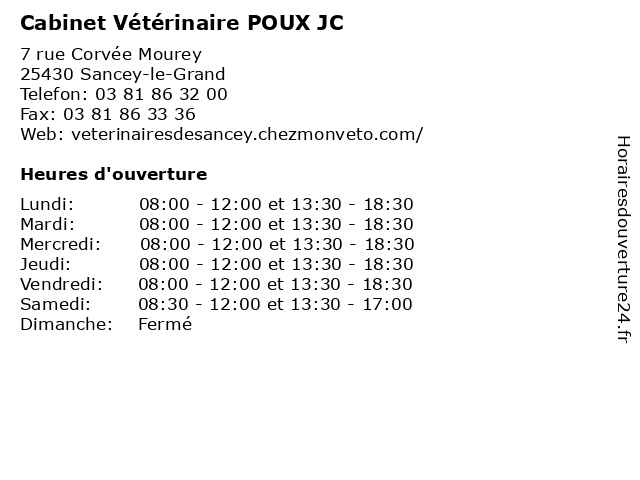 | Mercredi | 08:00-12:00 et 13:30-18:30 |