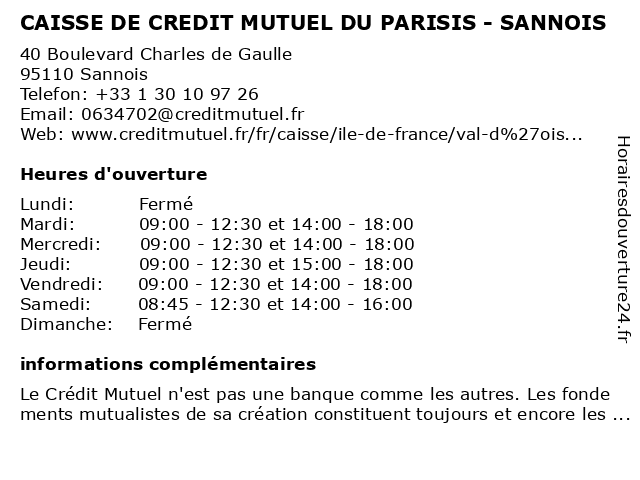 Termes de recherche pour CAISSE DE CREDIT MUTUEL DU PARISIS - SANNOIS:du, de, parisis, sannois, crédit, mutuel, caisse |