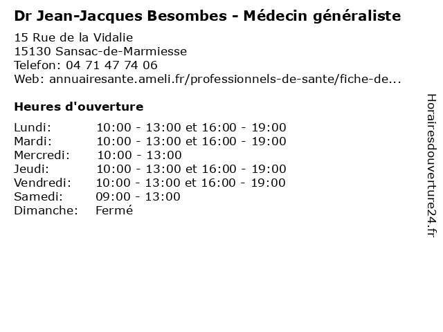 | Lundi | 10:00-13:00 et 16:00-19:00 |
