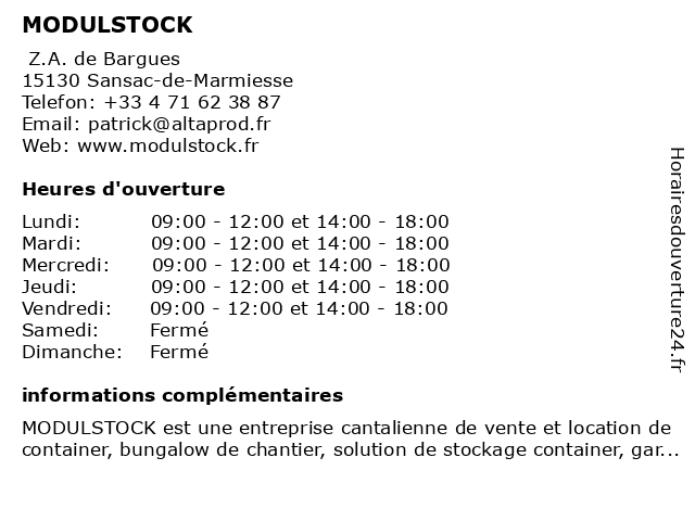 | Lundi | 09:00-12:00 et 14:00-18:00 |