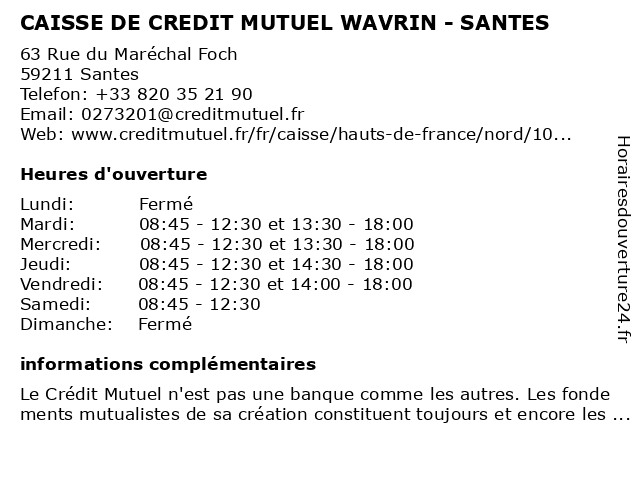 Termes de recherche pour CAISSE DE CREDIT MUTUEL WAVRIN - SANTES:de, wavrin, crédit, mutuel, caisse, santes |