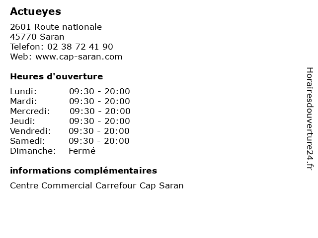 | Samedi | 09:30-20:00 |