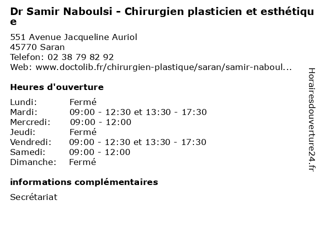 | Mardi | 09:00-12:30 et 13:30-17:30 |