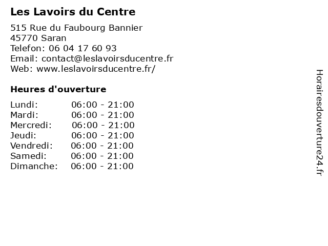| Lundi | 06:00-21:00 |
