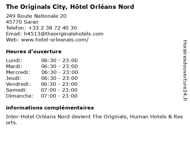 | Samedi | 07:00-23:00 |
