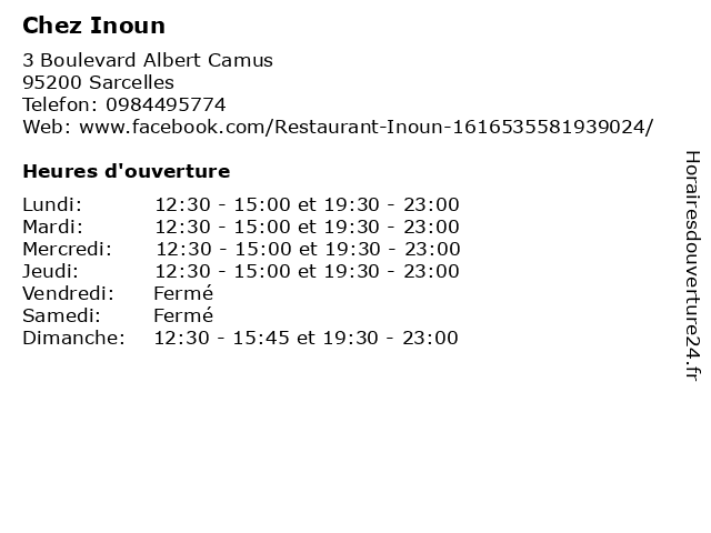 | Mardi | 12:30-15:00 et 19:30-23:00 |