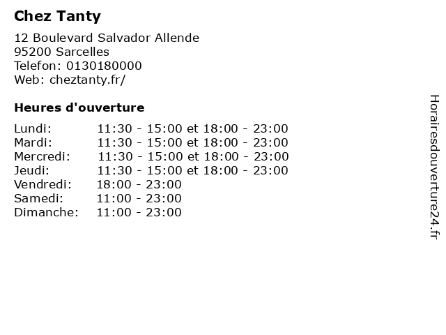| Mardi | 11:30-15:00 et 18:00-23:00 |