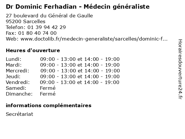| Lundi | 09:00-13:00 et 14:00-19:00 |