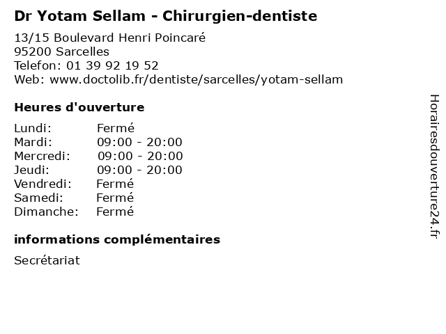 | Lundi | Fermé |