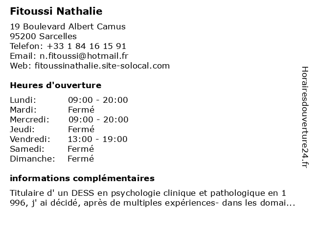 | Lundi | 09:00-20:00 |