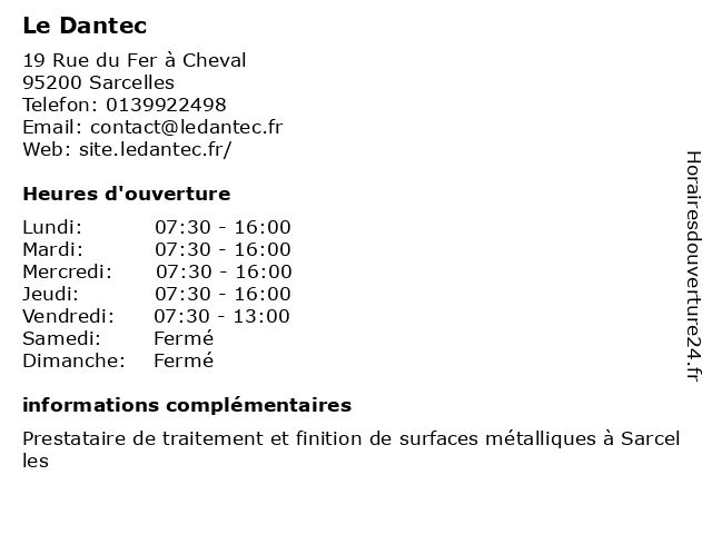 | Samedi | Fermé |