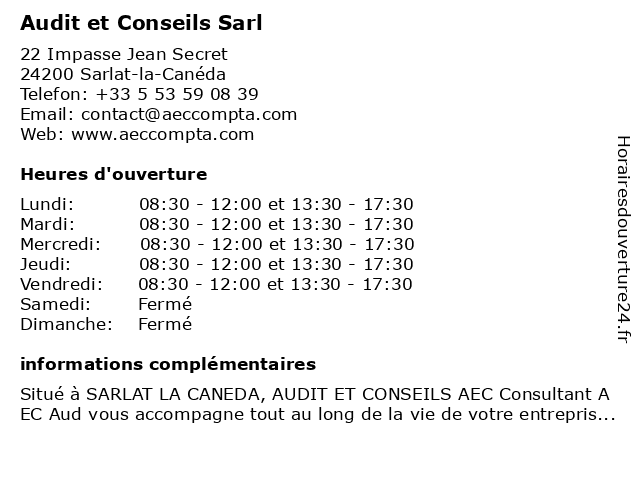 | Lundi | 08:30-12:00 et 13:30-17:30 |