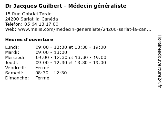 | Mercredi | 09:00-12:30 et 13:30-19:00 |