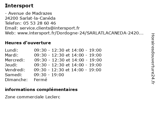 | Mercredi | 09:30-12:30 et 14:00-19:00 |
