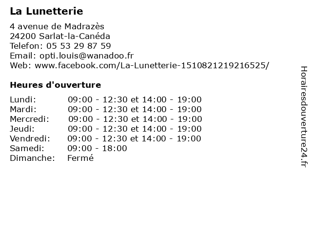 | Lundi | 09:00-12:30 et 14:00-19:00 |