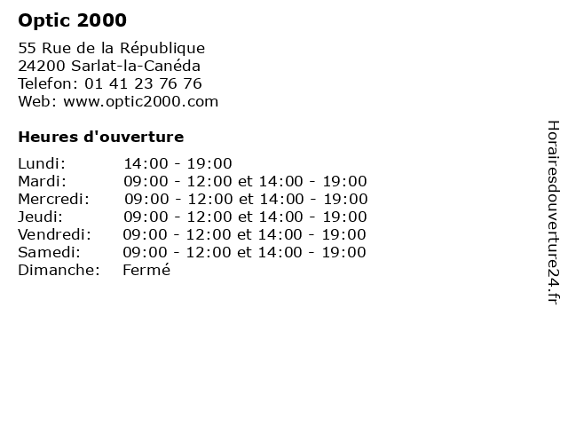 | Samedi | 09:00-12:00 et 14:00-19:00 |