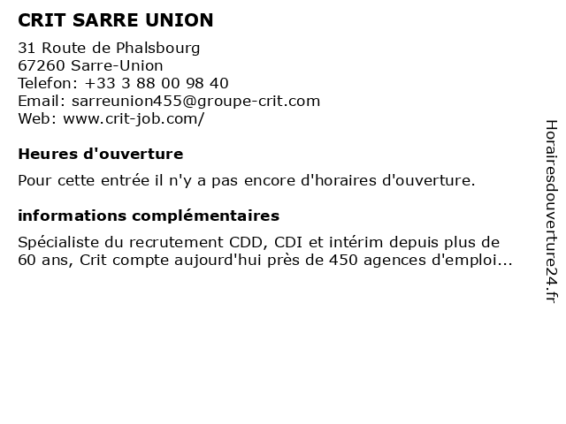 1 CRIT SARREGUEMINES (Distance: 18,39 km) 3b Rue René François Jolly, 57200 Sarreguemines crit, sarreguemines 6 |